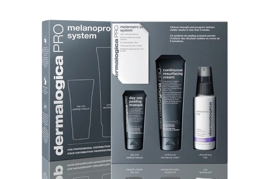 The Dermalogica Melanopro Peel is a professional-grade chemical peel designed to target pigmentation issues like melasma, post inflammatory pigment, dull skin & pigment spots. Step one is conducted in-office, followed by 6 weeks of at home skin care.